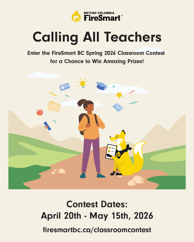 The FireSmart BC Education Program was launched in 2023. To promote the Program and add to the excitement of students returning to school, we are running a classroom contest from April 20th - May 15th 2026 offering fantastic prizes to participating schools.